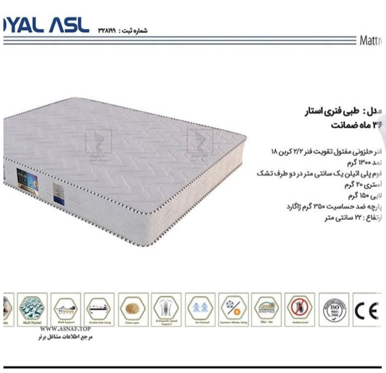 تشک رویال اصل 2 سال ضمانت طبی فنری