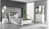 این تخت خواب در رنگ های سفید و لارکس با خط های مشکی رنگ به فروش می رسد.