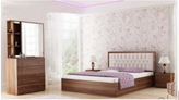 در قسمت تاج تخت خواب از پارچه به صورت لمسه دوزی شده بهره گیری شده است.