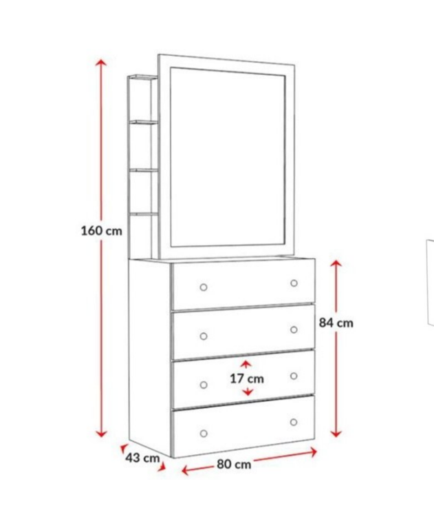 ارتفاع کمد ۲۱۰ سانتی متر، عرض کمد ۹۰ سانتی متر و عمق آن حدود ۴۵ سانتی متر می باشد.